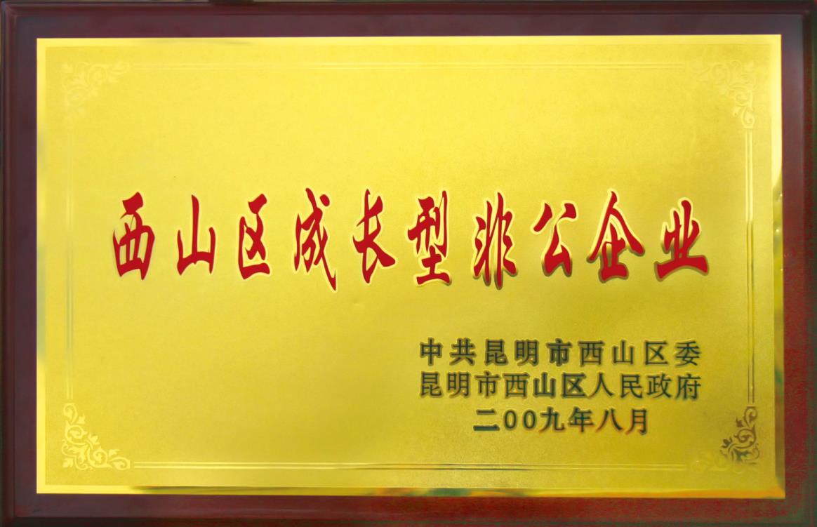 被中共昆明市西山区委、昆明市西山区人民政府评定为“西山区成长型非公企业”